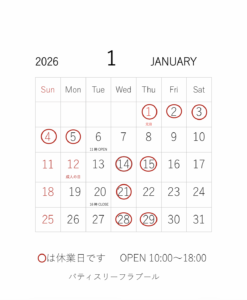 2026年は、1月6日(火)11時~の営業です。
